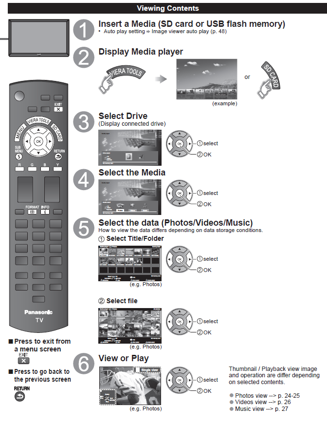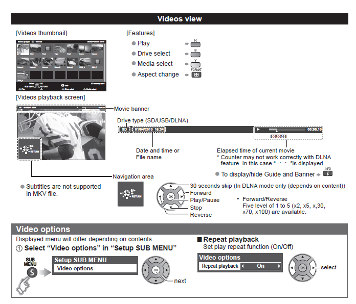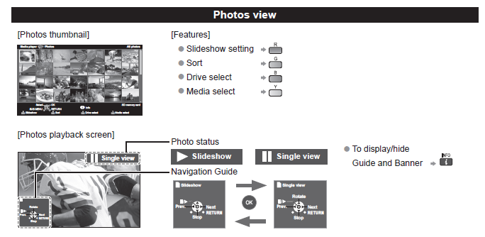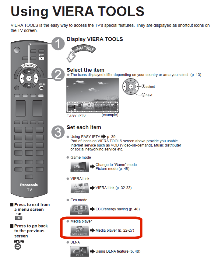 Make sure you are using the Panasonic Remote Control, and not a replacement remote that does not have all the buttons required for managing the Panasonic media player. Your remote control should look like the one picture here: