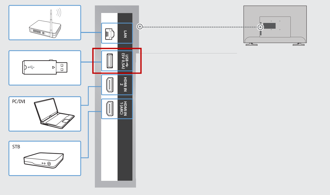 - Plug in the USB: Insert your USB drive into any USB port on the back of your Samsung TV.