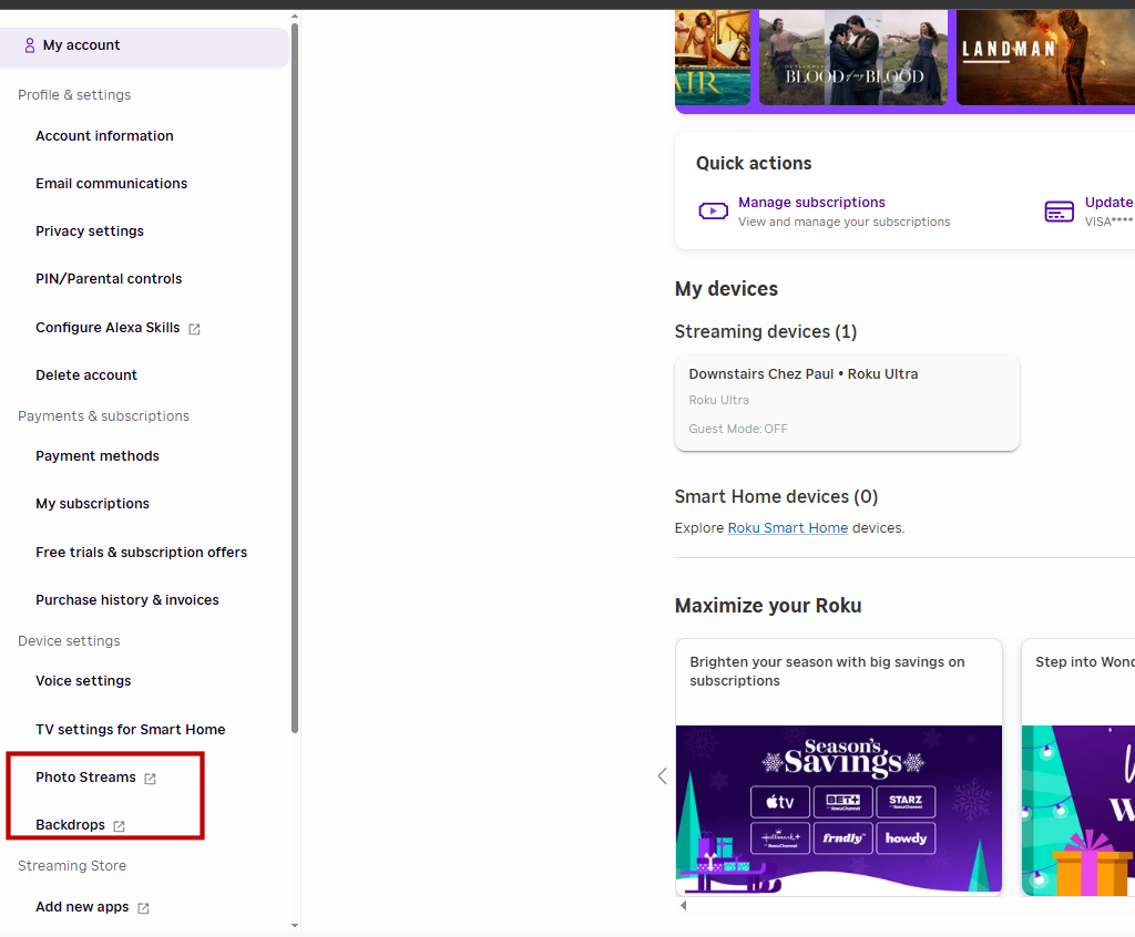 As of this writing (12/25), Roku is transitioning from its Photostreams app to its Backdrop app.